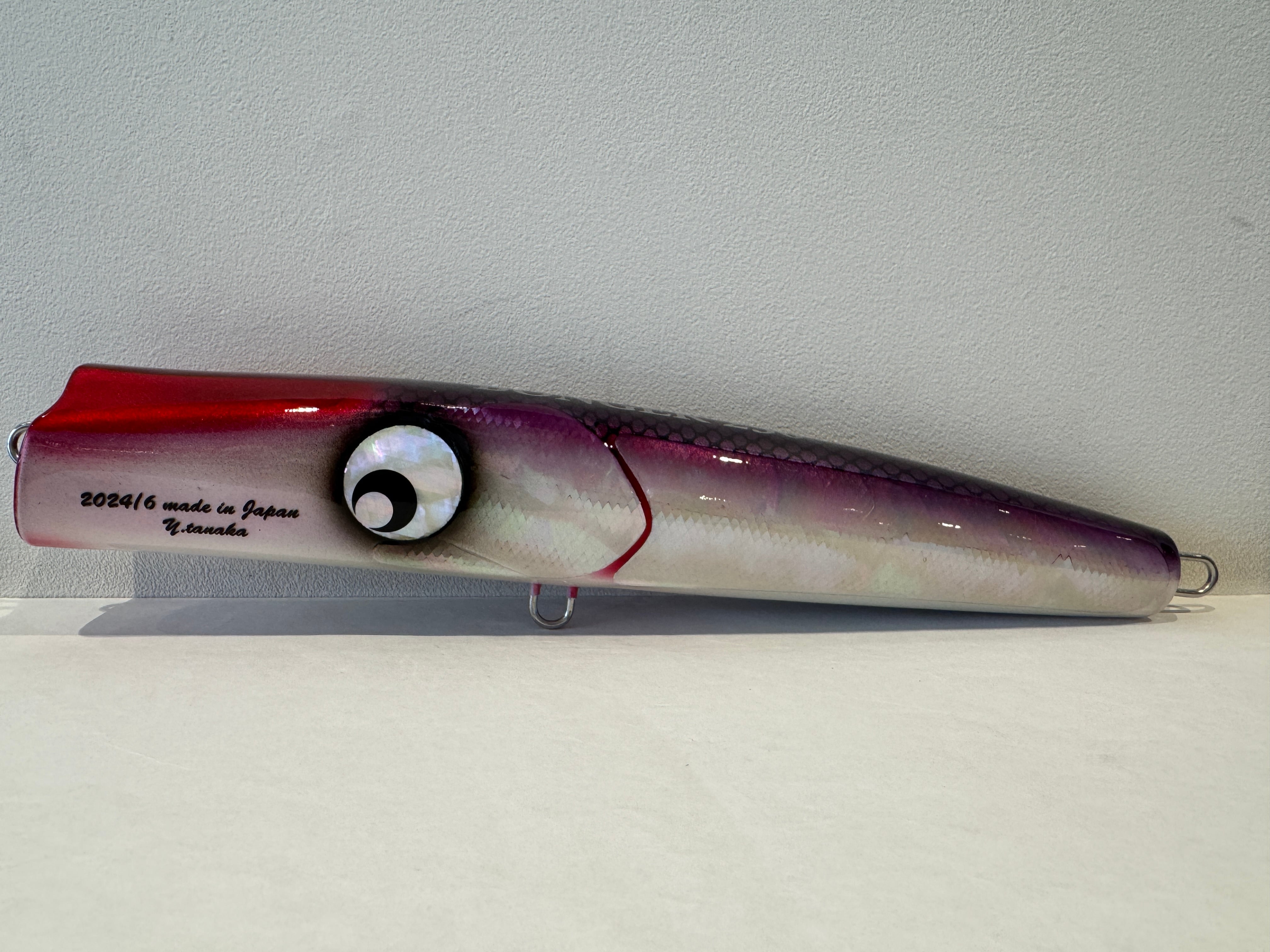 ジャークした時に口の上部を逆Vカットした独特の形状からでる水流でボディーが揺れ動き、細身でありながら口径の大きい口から細かな泡をまといながらターゲットを誘い出します。